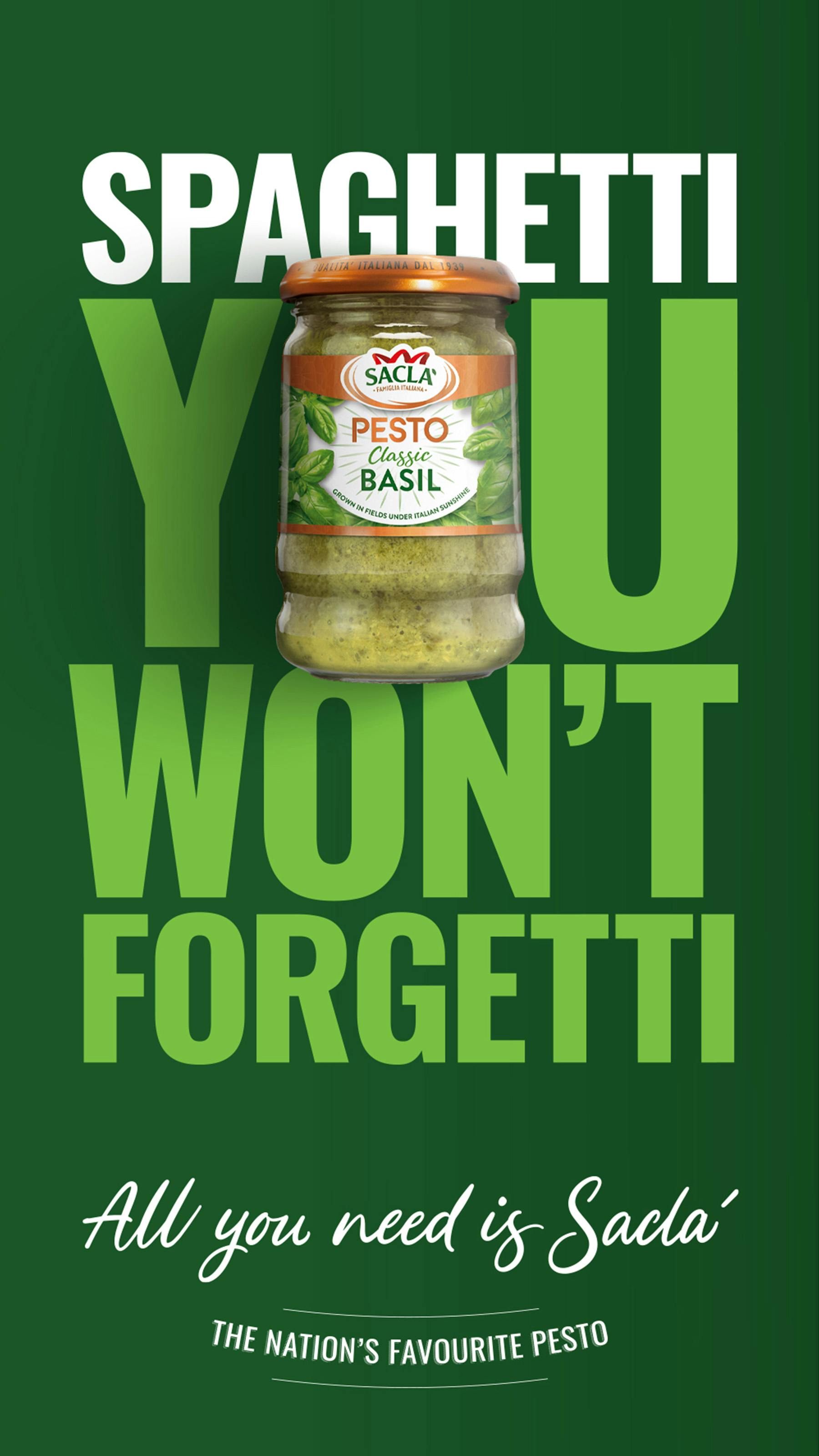 There was a trend amongst under 40s to use fewer ingredients for affordable and minimum effort mealtimes. What could be simpler than adding some pesto to pasta? Our campaign put pesto on people’s radar, celebrating Sacla’ as the nation’s favourite brand.